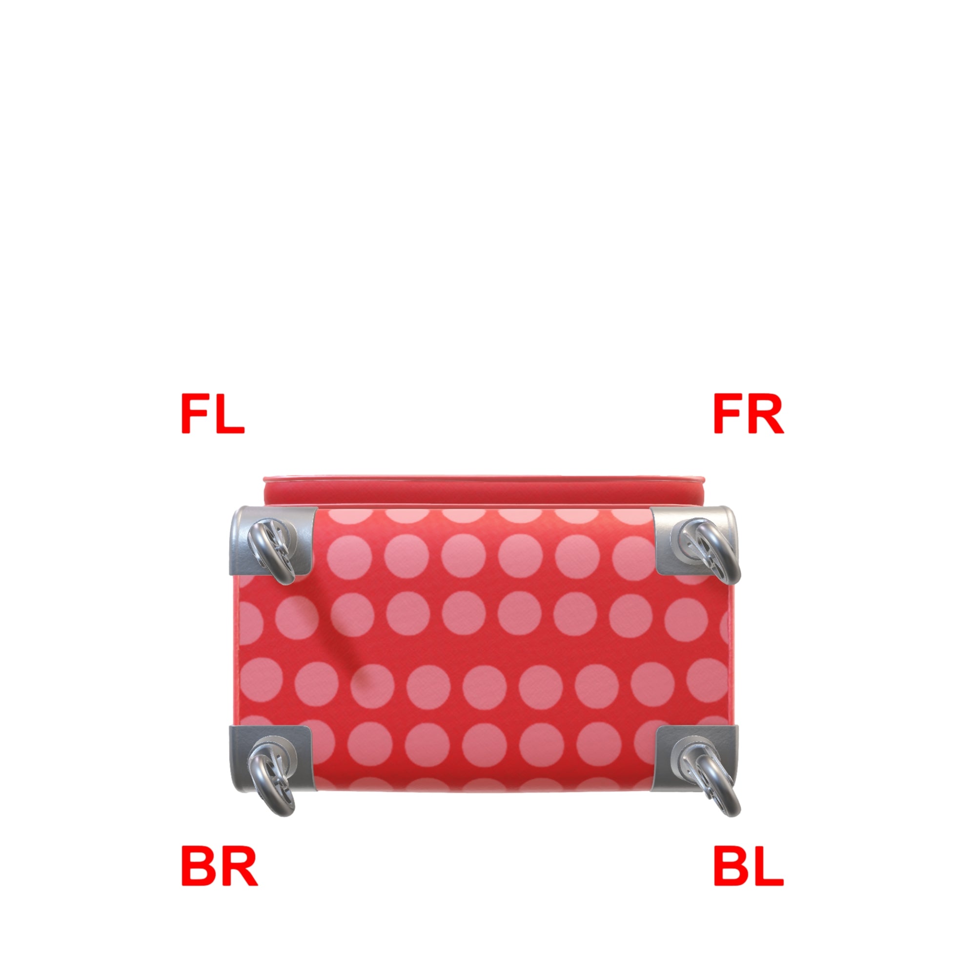 Gebruik de onderstaande afbeeldingen om te bepalen of een Voorkant Links (VL), Voorkant Rechts (VR) of Achterkant Links (AL) of Achterkant Rechts (AR) Wielen vervanging nodig heeft. De tweede afbeelding toont de onderkant van de koffer wanneer deze op zijn achterkant ligt met het logo naar boven gericht. Let op de Wielen oriëntatie in de productbeschrijving hierboven.